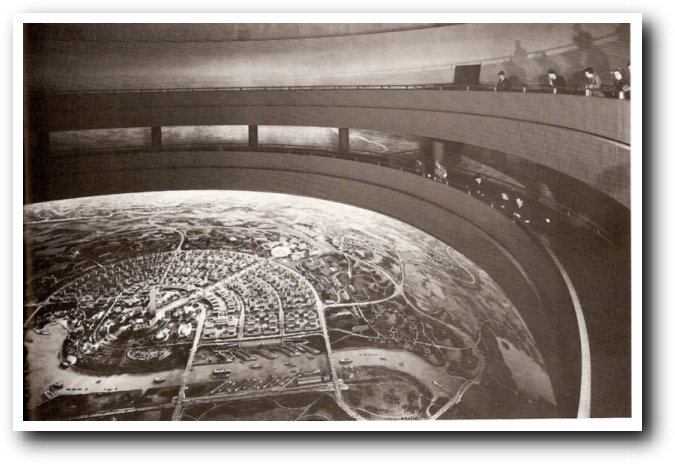 21. Springing up around a planned traffic system-still looked on in 1939 as the guarantee of future happiness-the metropolis of 1960 was seen to be free of slums and blight, full of parks and civic centers. Energy sources would apparently be abundant, climate perfect. In 1964 GM offered an analogous ride at almost the same location.