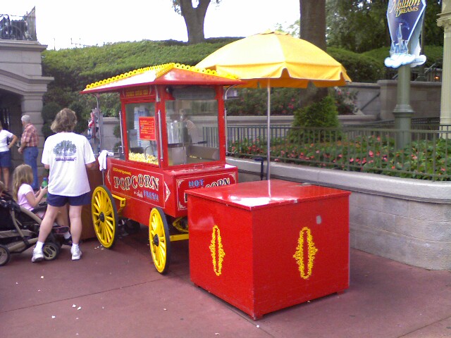 Can You Smell It? April 5, 2008May 16, 2016George The popcorn vending cart located near City Hall at the Magic Kingdom at Walt Disney World.
