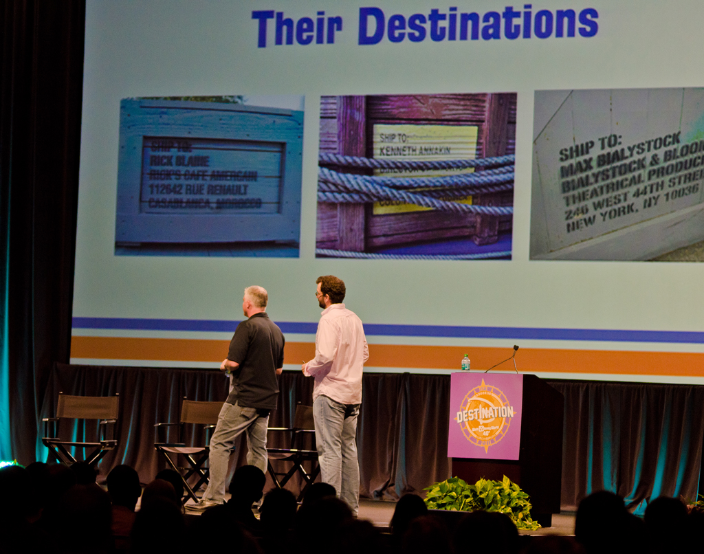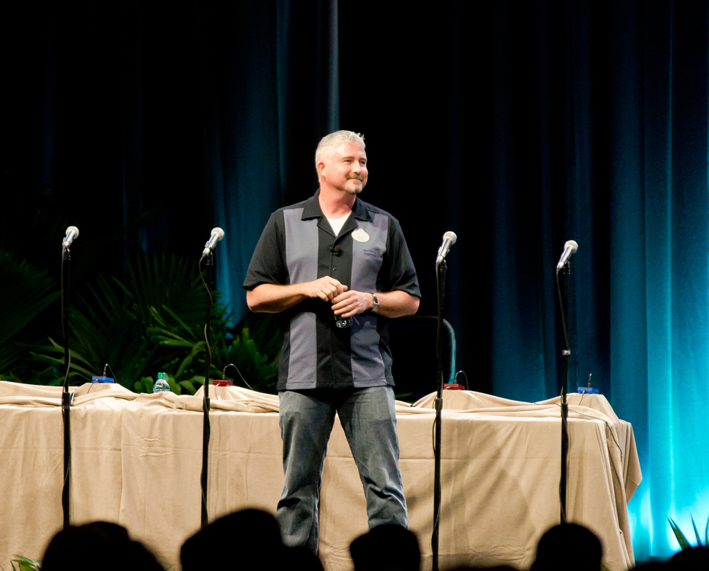 I took 1971 pictures at the event, but I got very few shots of the guys that weren’t blurry. I am a huge fan of Tom and Sarah Bricker from the Disney Tourist Blog; their shots from the parks are imaginative, creative and stunning. Tom had been posting some mini-reviews of the Destination D event and I asked if he had any good shots of the presentation. He sent me a few to use (I’ve included the other shots from Tom at the end of the post).