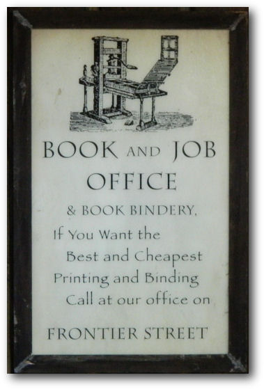 Stop by the Book and Job Office & Book Bindery, if You Want the Best and Cheapest Printing and Binding Call at our office on Frontier Street.