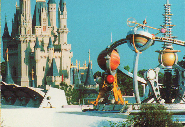This postcard has a rather odd juxtaposition of the monorail, Tomorrowland and Cinderella Castle. I’m assuming the vantage point is between the Magic Kingdom bus stop and the Contemporary Resort. It’s actually a very cluttered image for the postcard and really surprises me that Disney used it for promotional purposes.