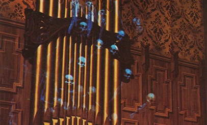 The Haunted Mansion – The Ghostly organist plays a “haunting refrain” in the great banquet hall…one of many “horrifying” sights awaiting visitors inside the Haunted Mansion.