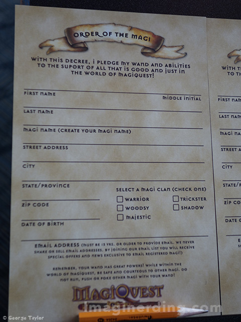 Our next step was filling out an “Order of the Magi” registration form for each Magi, er, child. After filling out the needed information (I assume we’re going to get offers and birthday cards), we headed upstairs to register the wands and begin our quests.