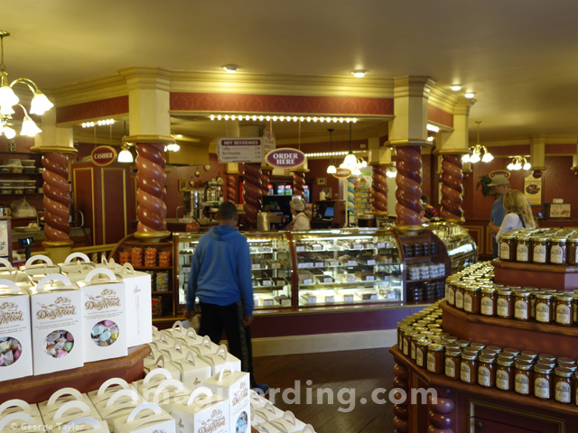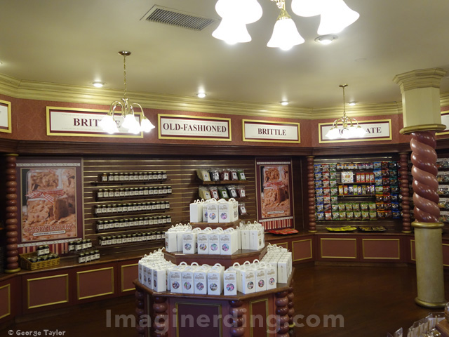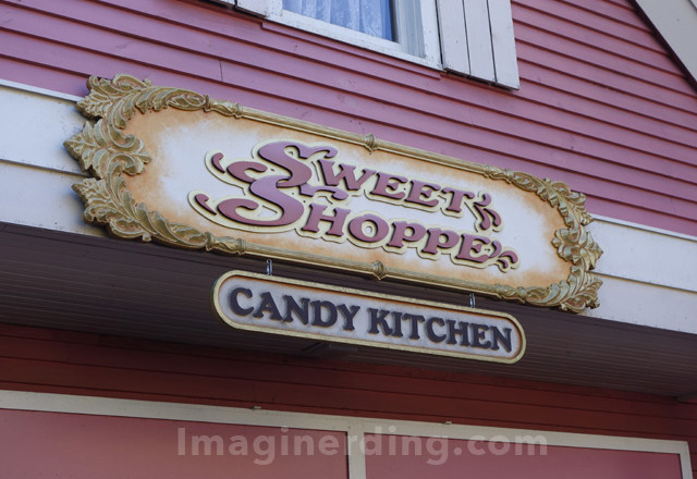 The Sweet Shoppe is fairly large and arranged like a country store, with plenty of candy on display along the walls and in islands.