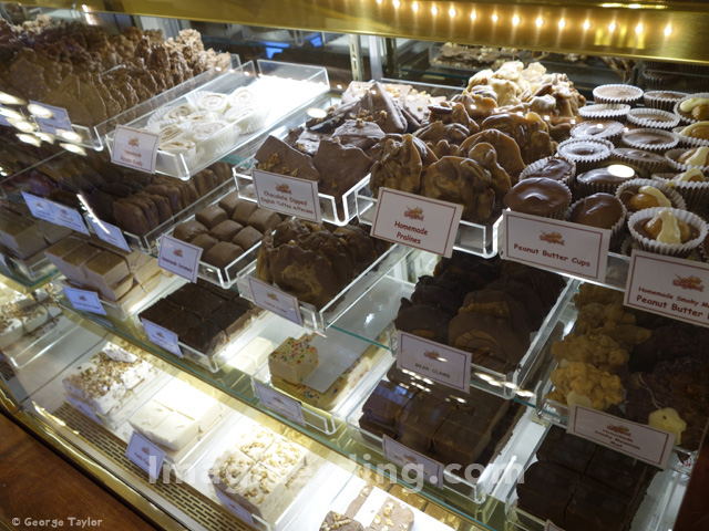The display cases near the order area and checkout contained an amazing number of homemade goodies. Fudge, candied apples, brownies and chocolate-covered items tempted everyone in our group.