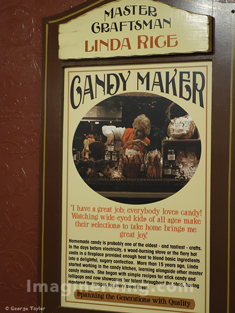 There was a nice sign showcasing Candy Maker Master Craftsman, Linda Rice. It’s a also a great way to showcase the heritage and history of the park.