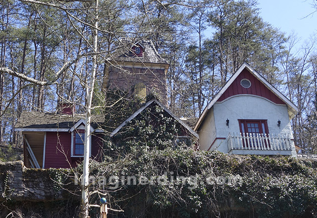 On my last trip, we crisscrossed the area between Riverton Junction, The Village and Craftsman’s Valley throughout the day. I knew about the mansion on the hill from some of the research that I’d done, but I was surprised at the theming located underneath the mansion.