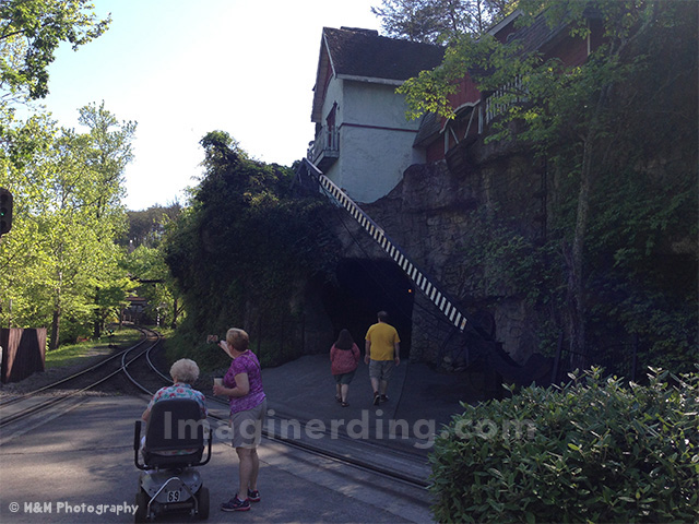 You can see from the illustrated map that you walked under the Inventor’s Mansion to travel between the two sections of the park.
