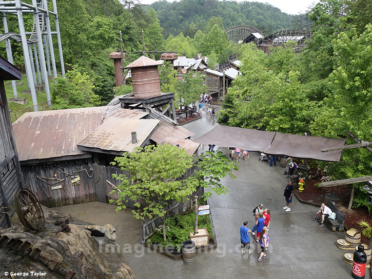 A photo of Timber Canyon from the queue of Mystery Mine. You can see the amazing Thunderhead roller coaster in the background. Mystery Mine was incredibly surprising, but my favorite coasters at Dollywood are Thunderhead and Wild Eagle. But all of the coasters offer something worth riding.