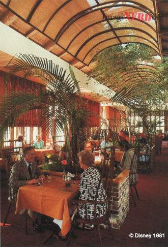 In 1977, one of the first character dining experiences was a simple buffet at Coconino Cove at the Contemporary Resort; guests could join Disney characters for breakfast every Sunday. The buffet would move a year later, but not too far away. A 1978 Walt Disney World News offers this glimpse of the Terrace Cafe at the Contemporary: “As an added treat, guests may join the Disney characters for breakfast each Sunday morning from 8 – 10:30 a.m. It’s a delight for the kids- and fun for adults, too.” Reservations were not required.