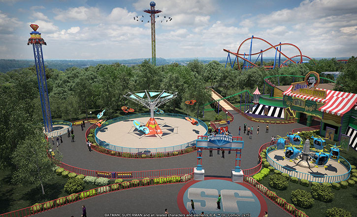 “These two new sections of the park will offer families hours and hours of fun with attractions mom, dad and the kids can experience together,” said Park President Dale Kaetzel. “This latest expansion continues our multi-year plan to provide thrills for guests of all ages and includes the addition of Hurricane Harbor in 2014, two new devious rides in Gotham City in 2015 and other additions planned for the future.”