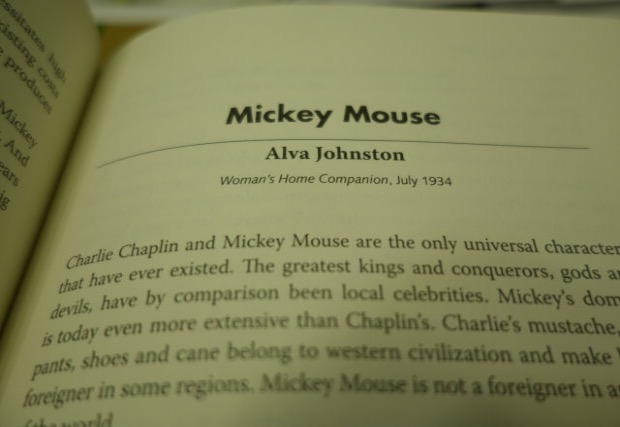 George: The 70 essays in the Mickey Mouse Reader are presented by art historians, critics, authors, and an anthropologist. Apgar was able to cull a wide swath of articles that really show how Mickey was perceived at various times throughout his career. Apgar does provide insight into each article by noting the historical issues and even the “mistakes” made about the Mouse’s life or the company’s history. The bulk of the articles seem to land during the first 10-15 years and the last 30 years of Mickey’s career, thus far. The middle period is the sparsest, but he did drop out of most animation around the middle of the previous century.
