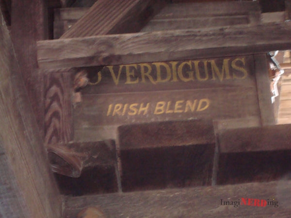 In the queue for Big Thunder, there is a crate marked O’verdigums Irish Blend. (Get it? Overdigums?)