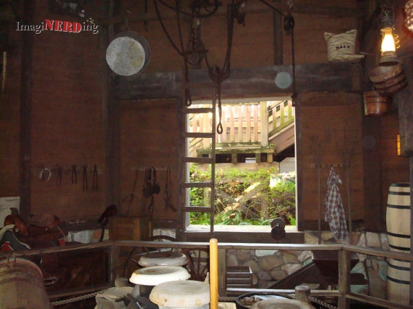 It is time for our FastPass for Splash Mountain. As we wind through the queue, we find more food and kitchen cookware. Pots, pans and milk containers abound!