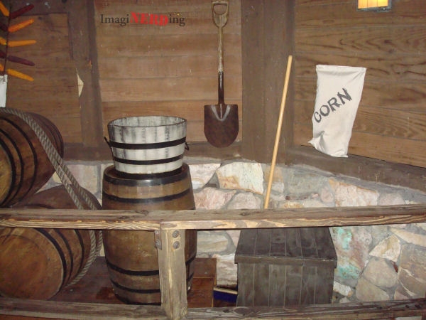 We’ve got a pot-bellied stove in the bottom corner along with more milk, a butter churn and a sack!