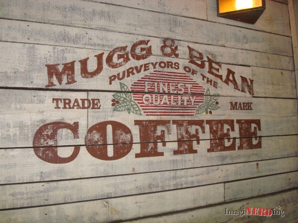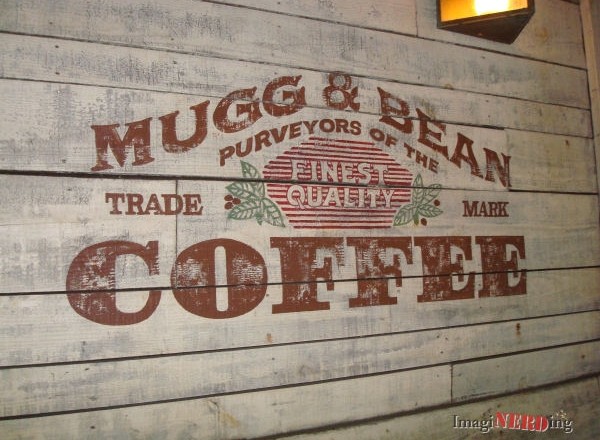 After exiting our Splash Mountain log and before viewing our drop photo at Splash Down photos, we run across some advertisements. The first one is for Mugg & Bean Coffee. I ran across it for the first time in 2007 and did some research. There is a real Mugg & Bean Coffee Company and the president assured me that there was no connection. He had seen it earlier and had friends ask him about it all of the time.