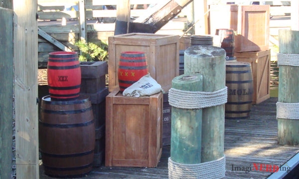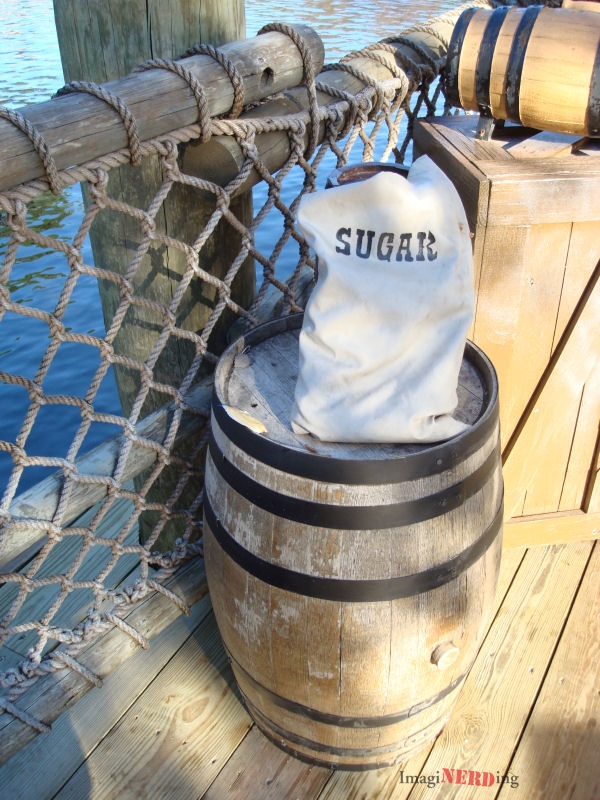 If we cross over into Caribbean Plaza, we can see a barrel of Rum near Pirates of the Caribbean. Those rascally pirates!