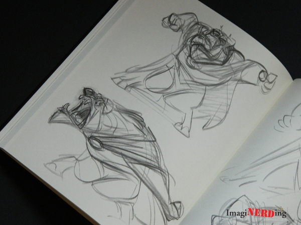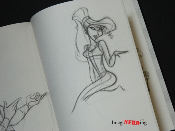 A Disney Sketchbook is gorgeous; there’s no doubt about it. At 152 pages and its large-scale format (roughly 11′ X 14′), it is a hefty book but it’s very well-constructed. The pages are printed on a heavy, artist’s-style paper that is wonderfully textured. The black and white sketches and drawings simply pop off of the beige-colored paper. You feel like you’re holding something special.