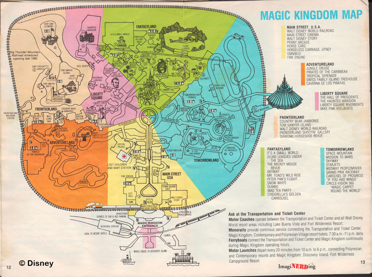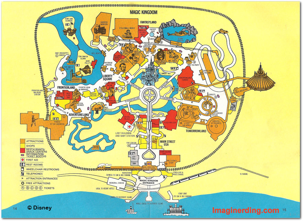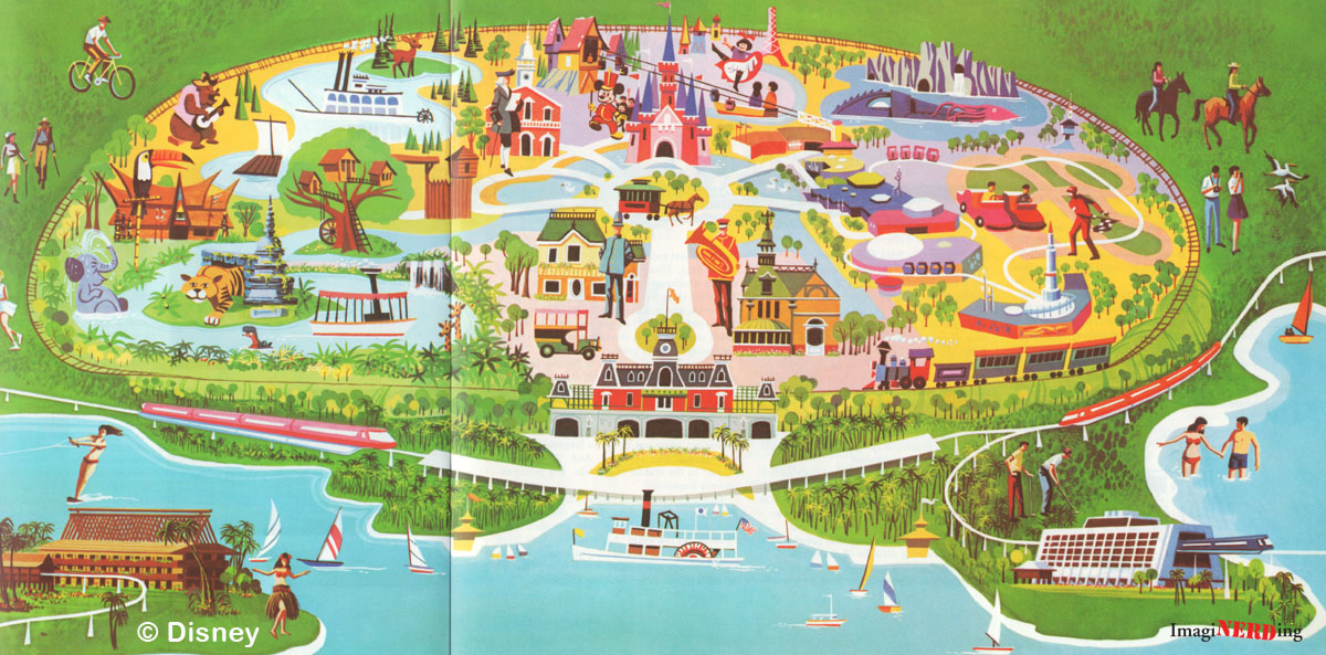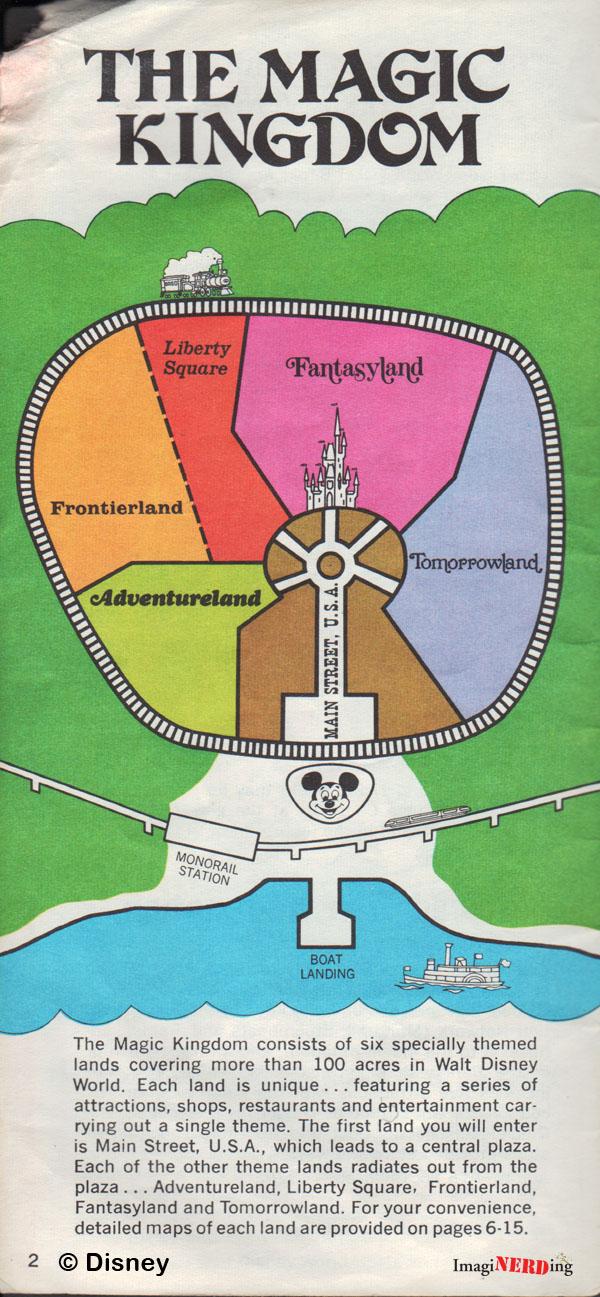 This is one of the first images in the guidebook that refers to the entire property. Notice the STOLPort? The Magic Kingdom is oversized and references only the major divisions of the park.