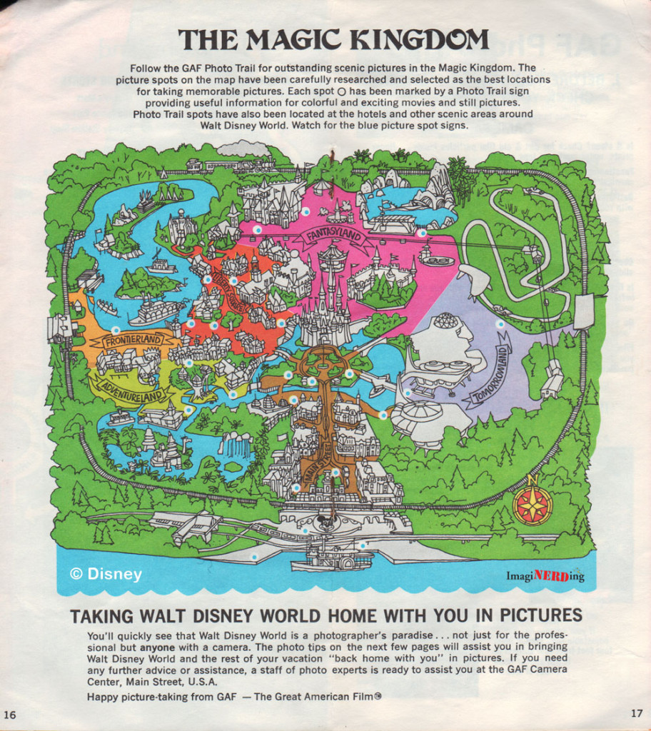 The GAF Guide was another publication presented to guide you in the Magic Kingdom and to help you take better pictures. It is interesting to see the map of the Magic Kingdom to go back to the different colored segments of the park based on the land.