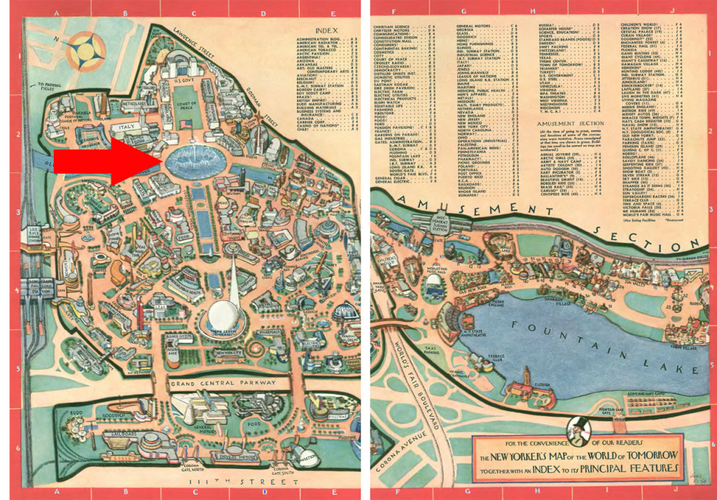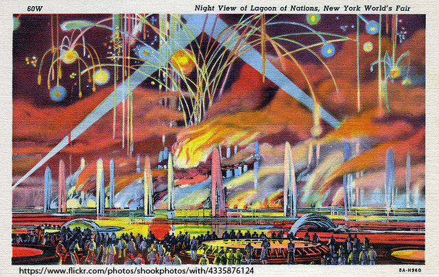 The fountain display at the Lagoon of Nations at the 1939 World’s Fair was designed by architect Jean Labatut who was director of graduate studies of the School of Architecture at Princeton University from 1928 to 1967. Documentation is housed in the Labatut Collection at the School of Architecture at Princeton: https://soa.princeton.edu/content/school-architecture-archive