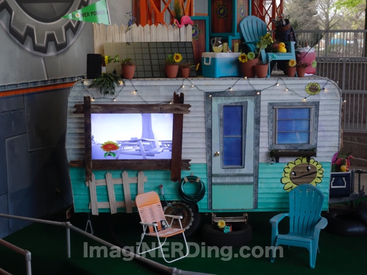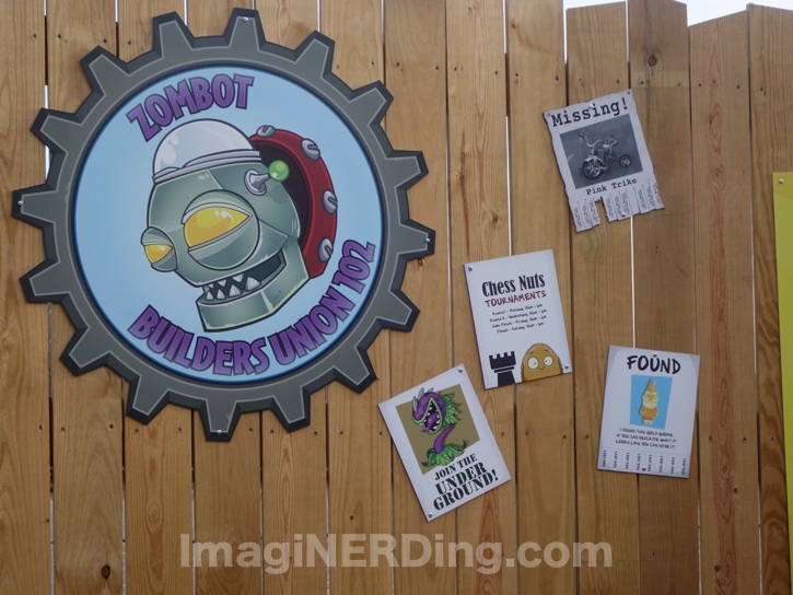 The Plants vs Zombies attraction is in the former Action Theater in the County Fair section of the park (near Afterburn and the Dodge ‘Em bumper cars).