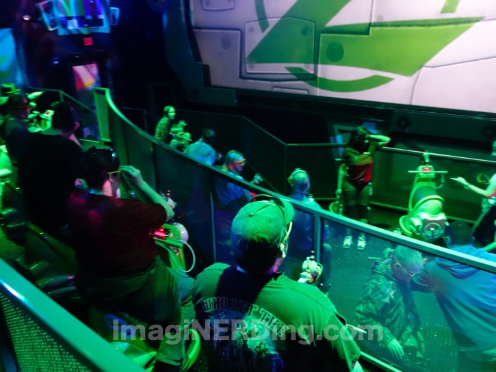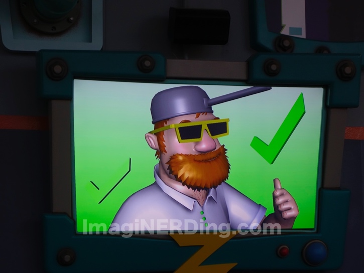 Once you reach the pre-show area (under the awning), the employees will assign you to a row and give you the 3D glasses. There are plenty of monitors in this area that tell you the story and explain how the game works. I won’t spoil anything here, except that it is an adventure through time and space!