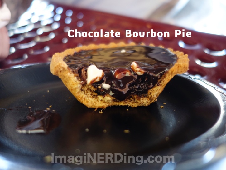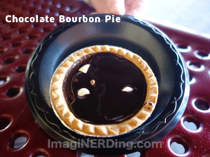 The Chocolate Bourbon Pie was a hearty dessert! The darkness of the chocolate and the tart crust mixed well with the aftertaste of the bourbon. The pie was very thick and it was difficult to use the plastic utensils. So we took it out of the pan and attacked it with our teeth!