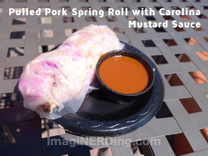 I was surprised by the size of the Puled Pork Spring Roll! It was handmade in front of me and I was delighted to see the ingredients (it looked like cole slaw). And the Carolina Mustard was delicious. It is served cold, which could surprise some people.