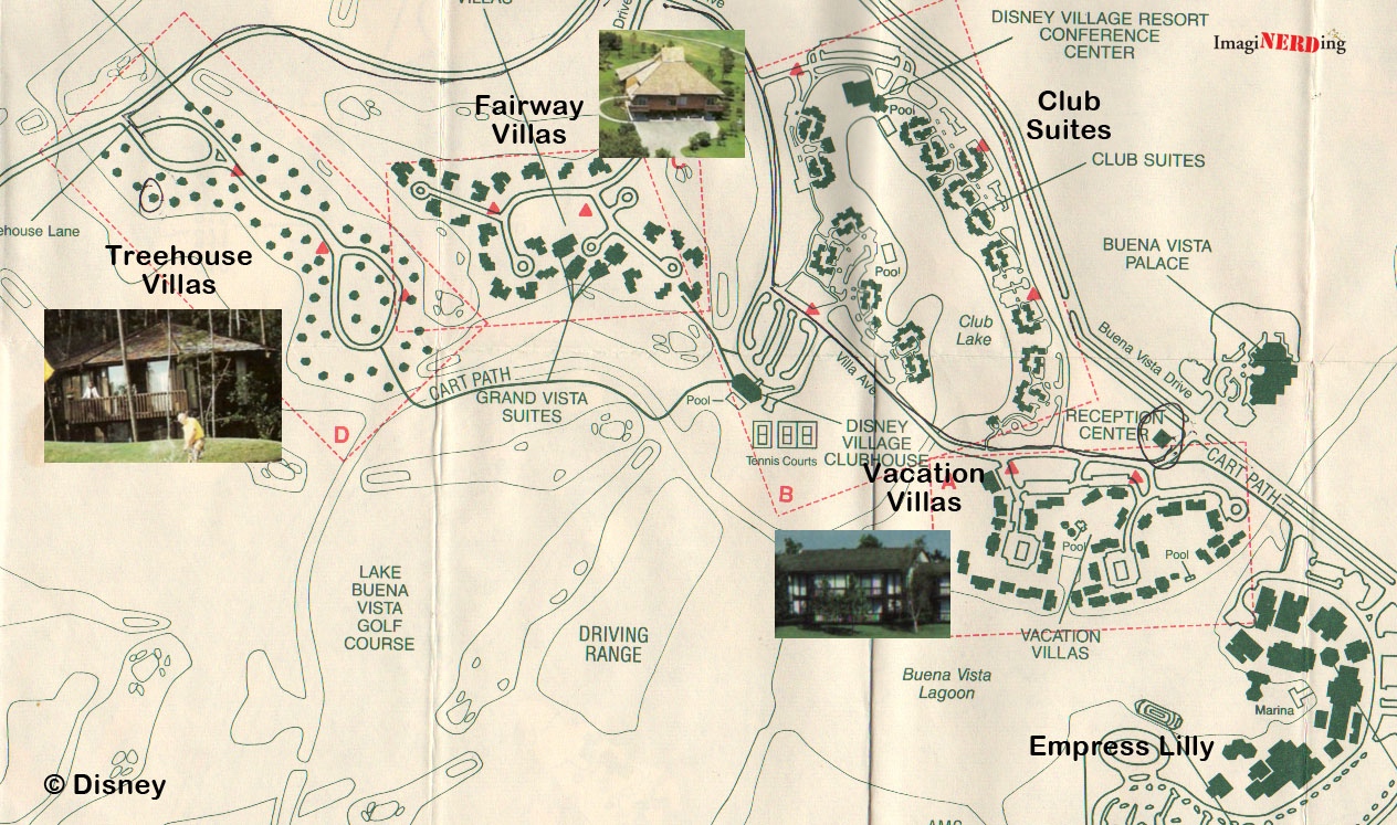 Let’s take a look at the accommodations that were available until the late 1990s and early 2000s. Many of the villas were slowly taken over by the Disney Institute before Saratoga Springs redeveloped the area for Disney Vacation Club.
