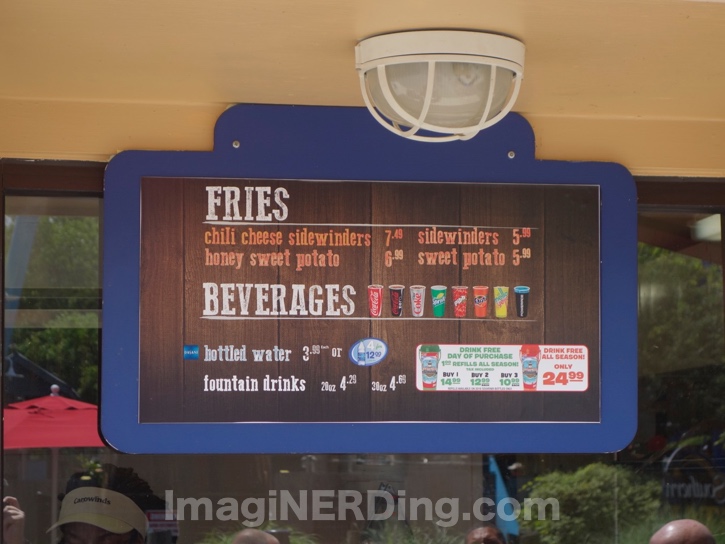 The following two photos show a new color scheme, marquee, lights and awning. I do love the new color scheme. It seemed more like a Tuscan-feel with the muted browns and yellows. Of course, you can’t deny an eatery with a view of Fury 325. I wonder if this is part of a change for the area with the Cirque stage show debuting soon.