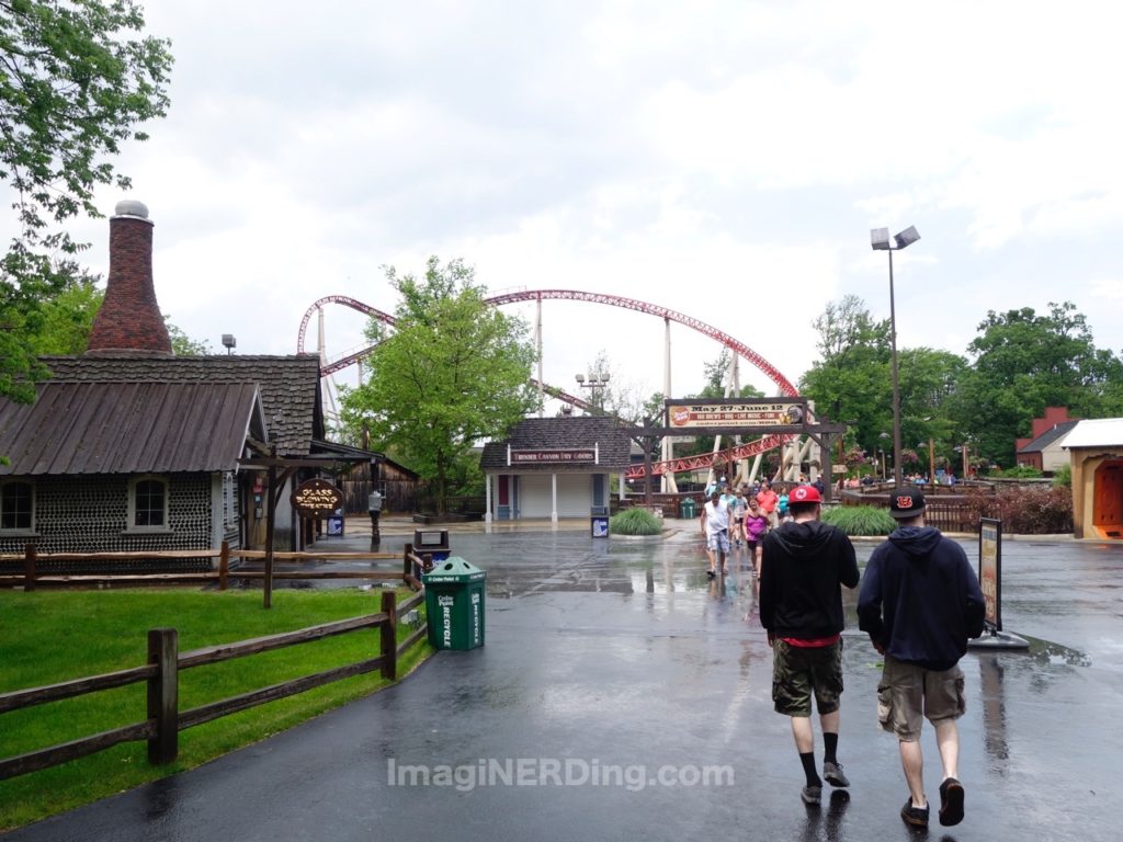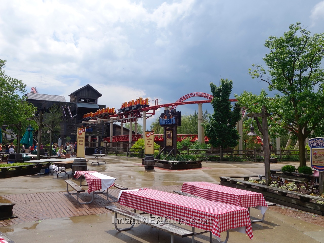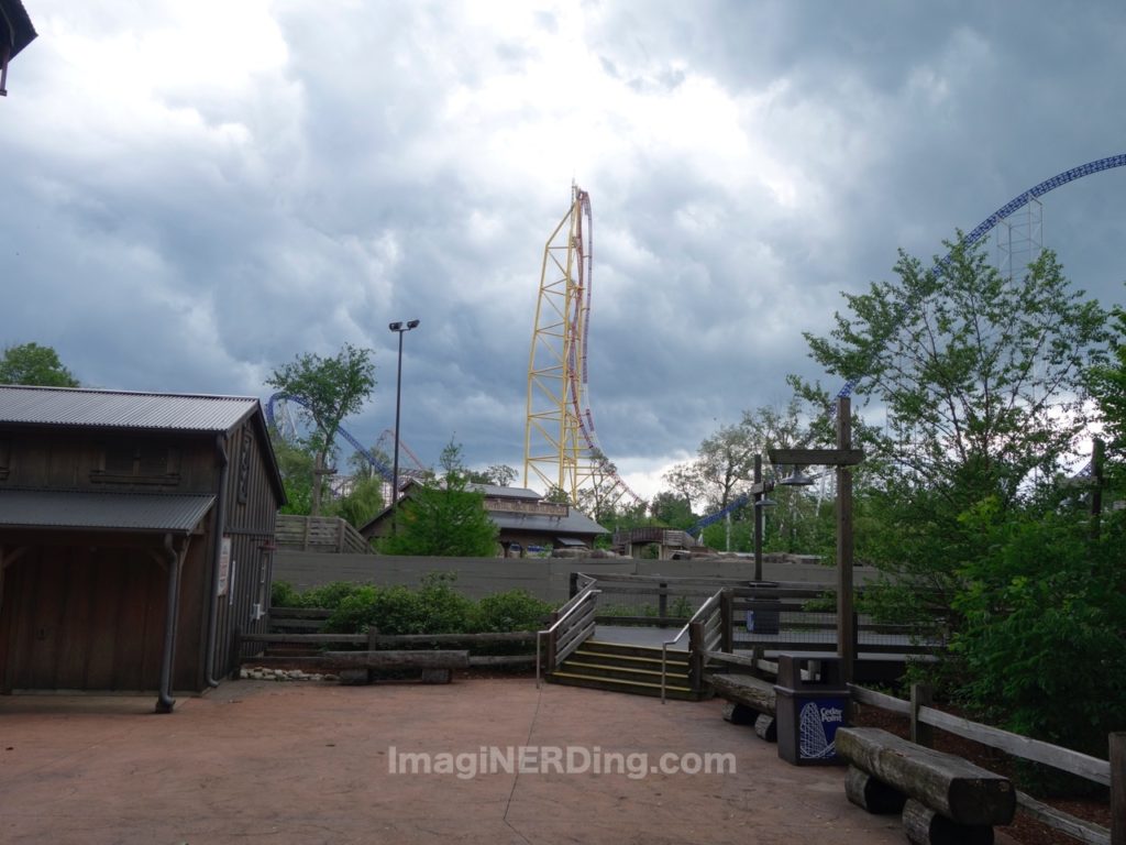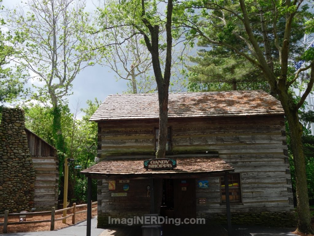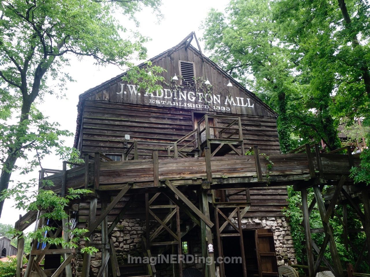 Around 1:00, I made my way back to Frontier Town to do the mine coaster and Maverick. I instantly fell in love with the Frontier Trail in Frontier Town and spent some time exploring the shops and area. Closer to 2:00, the weather started to turn and my trusty weather app showed lightning strikes nearby. Almost all of the buildings at Cedar Point double as a storm shelter, so I stopped at the Addington Mill (transplanted from Franklin, NC) to wait out the storm.