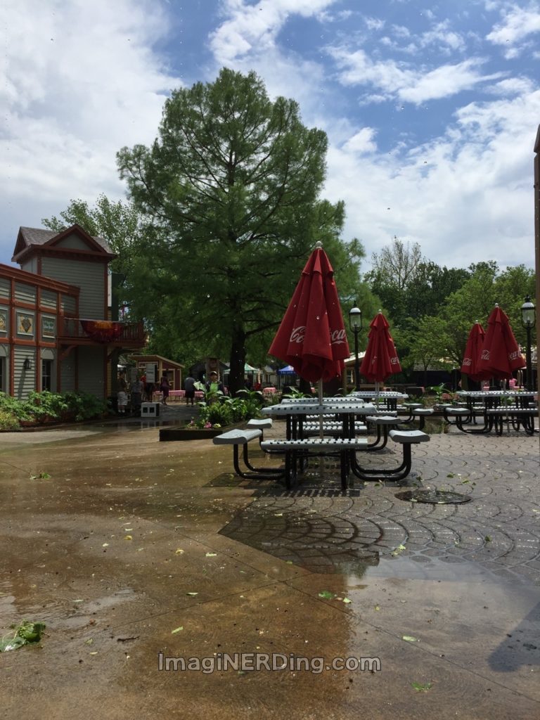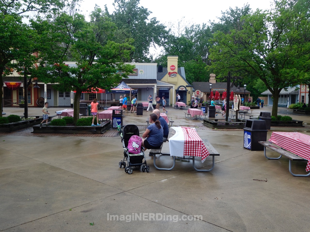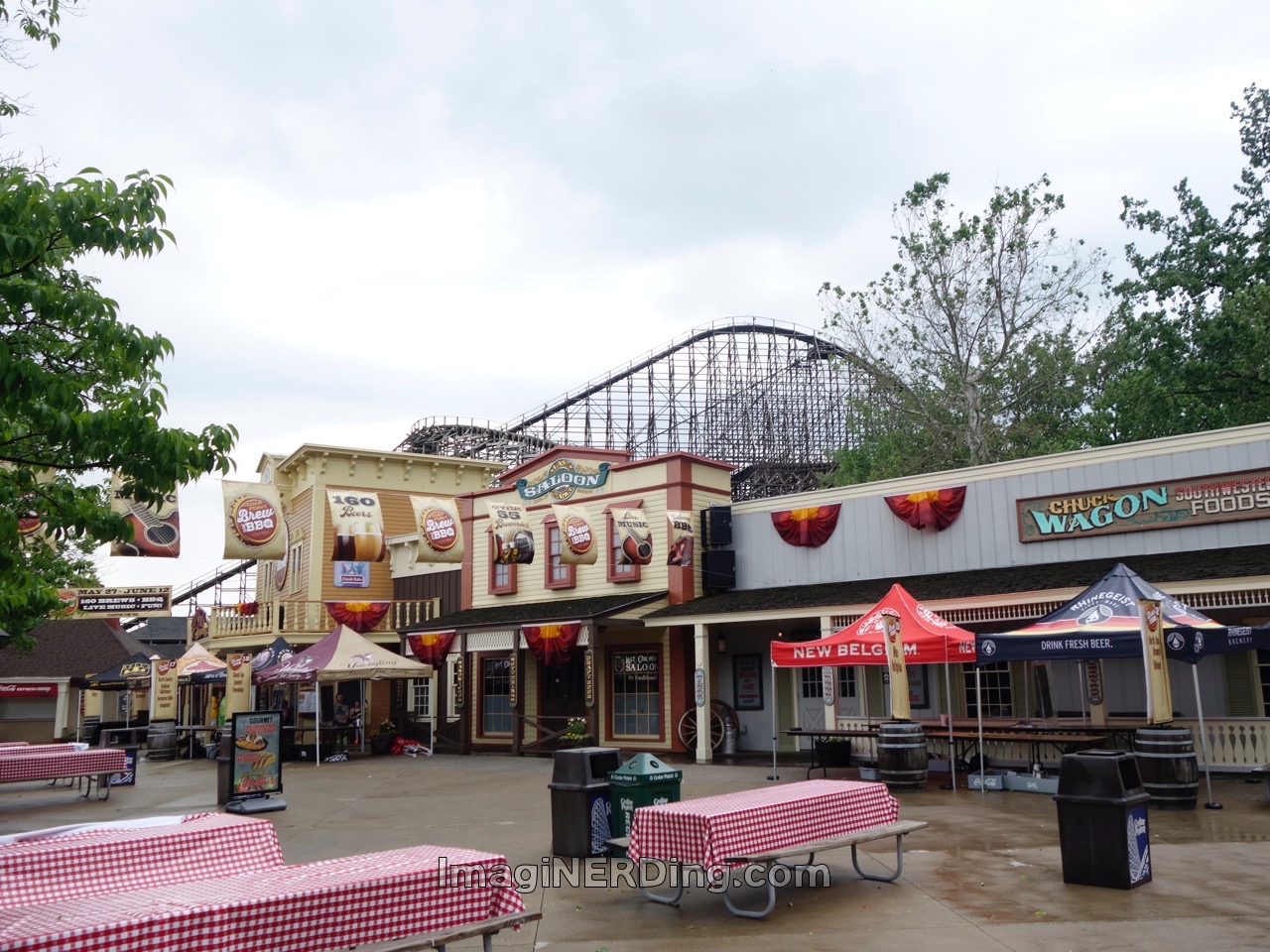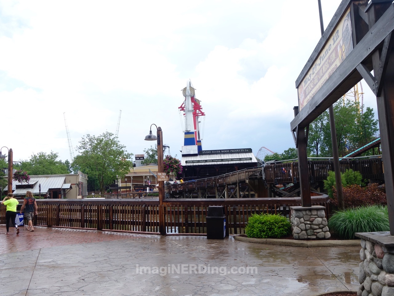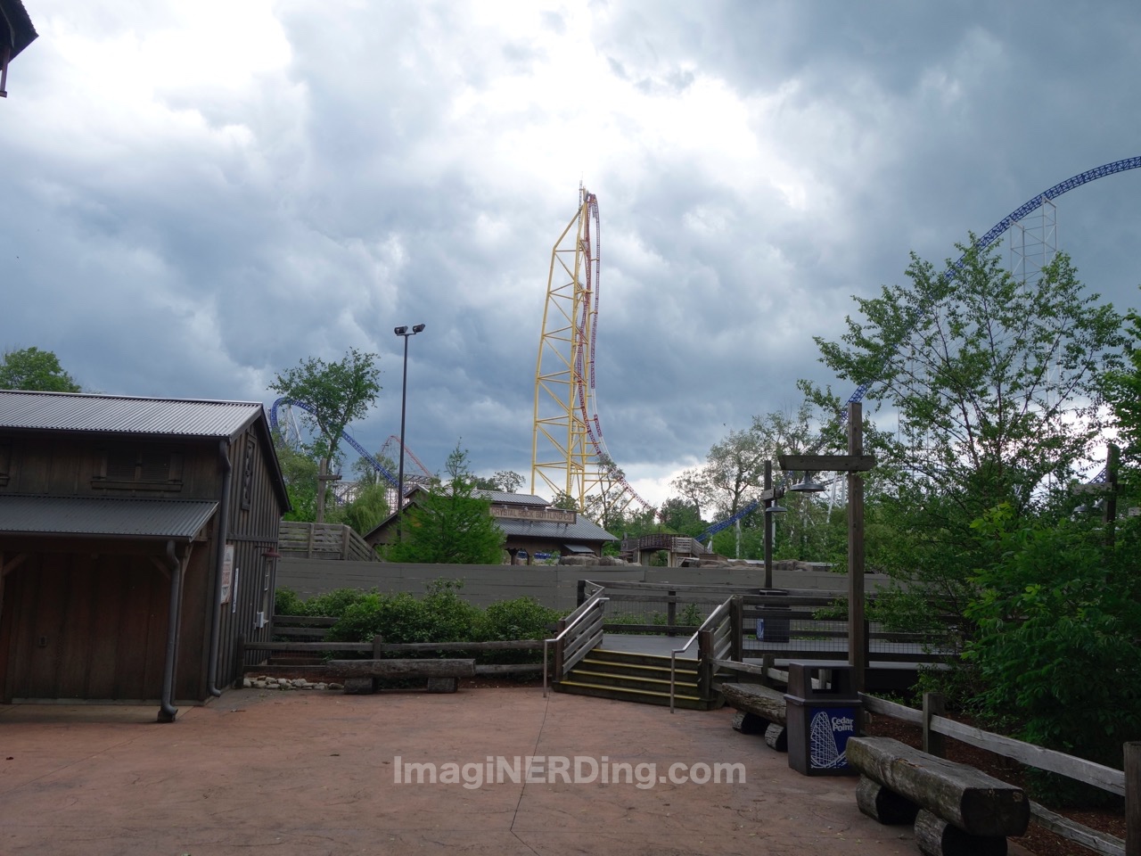 Around 1:00, I made my way back to Frontier Town to do the mine coaster and Maverick. I instantly fell in love with the Frontier Trail in Frontier Town and spent some time exploring the shops and area. Closer to 2:00, the weather started to turn and my trusty weather app showed lightning strikes nearby. Almost all of the buildings at Cedar Point double as a storm shelter, so I stopped at the Addington Mill (transplanted from Franklin, NC) to wait out the storm.