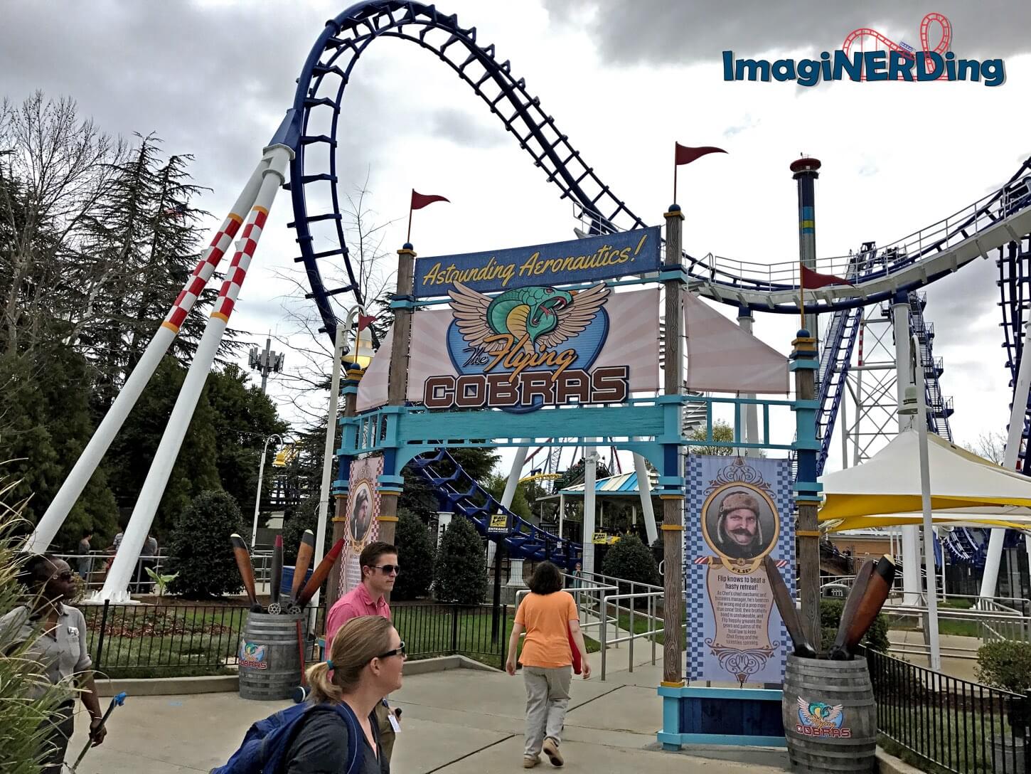 The Flying Cobras is the renamed and repainted Carolina Cobra by Vekoma. It’s still a slow-loading (and painful) Vekoma roller coaster but, they’ve added a backstory to the ride!