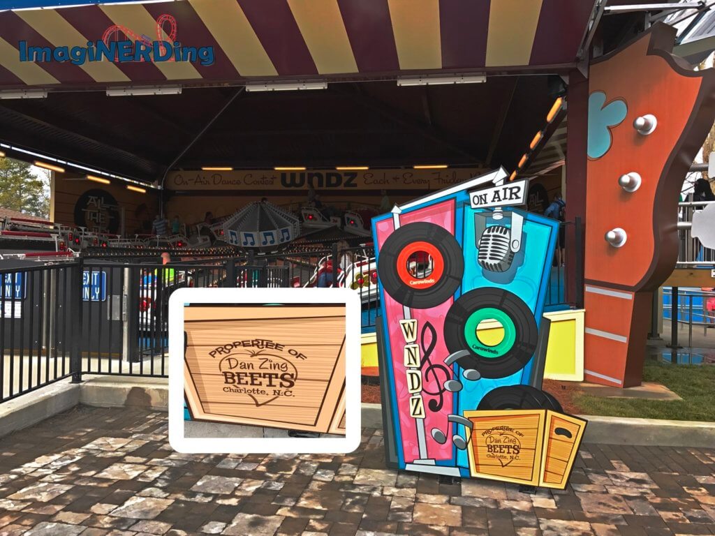 There’s some cute theming with WNDZ as the local radio station’s call number and also standing for the Winds of Carowinds.