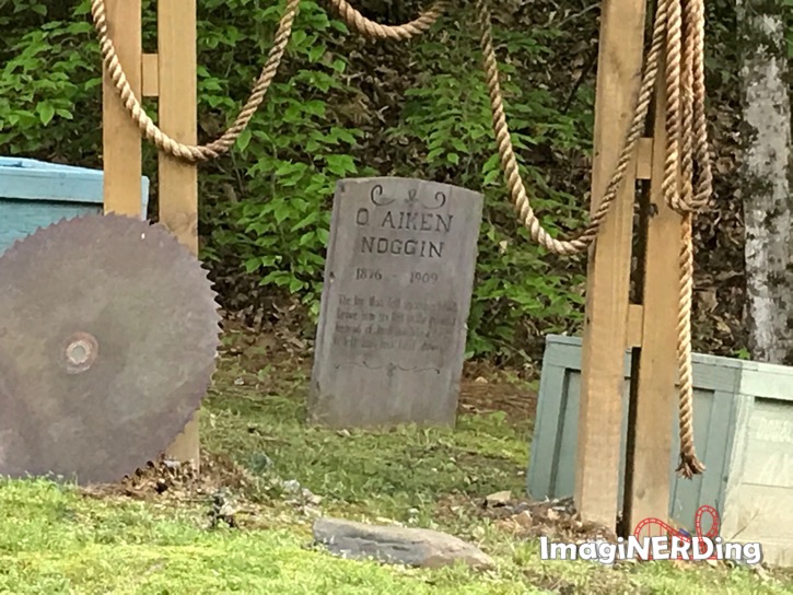 On the first part of the trail, after you go under the train trestle, you run into a few scenes that help tell the story. One of them is the Dollywood Lumberjack Graveyard!