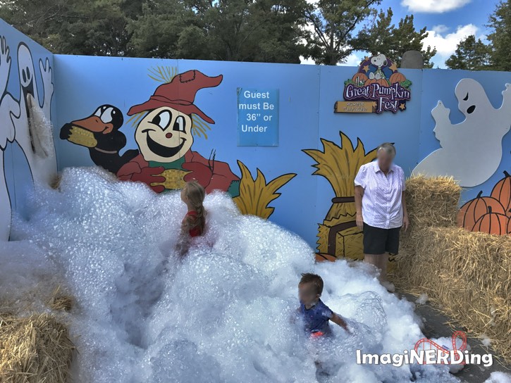 Peppermint Patty’s Hay Bale Maze is next to the Carousel. It’s a cute maze that offers quite a few dead ends. Pig Pen’s Foam Zone is sure to be a hit with the kids under 36 inches tall.