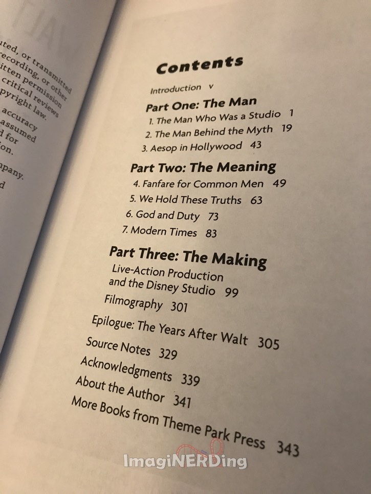 The book is divided into three major sections that look at Walt, the meaning behind the productions and the making of the films and television shows. The first two sections are essays while the third section details each production.