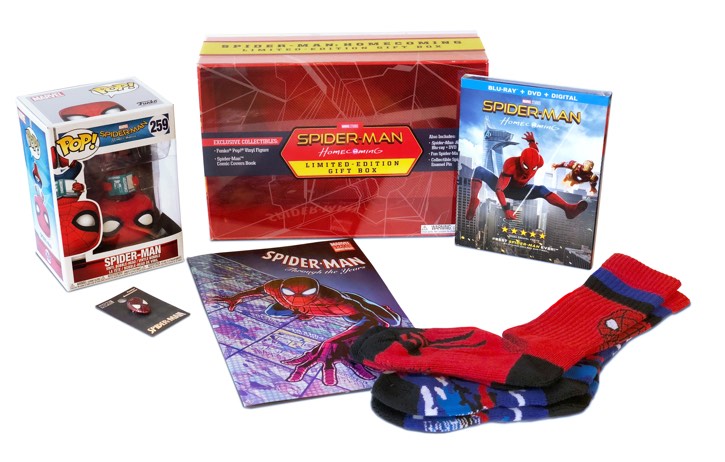 A perfect gift for any superhero fan, the new Spider-Man™: Homecoming Limited Edition Gift Box is available beginning today exclusively at Walmart and comes loaded with an exclusive Funko Pop! “upside-down” Vinyl bobble-head figure, only available through this limited retail offer. Also exclusive to this limited edition gift box is a Spider-Man Comic Covers Book called “Through the Years” featuring popular Spider-Man comic book cover art, as well as Spider-Man athletic socks, a collectible Spider-Man enamel pin, and the Spider-Man™: Homecoming Blu-ray, DVD and digital combo pack.