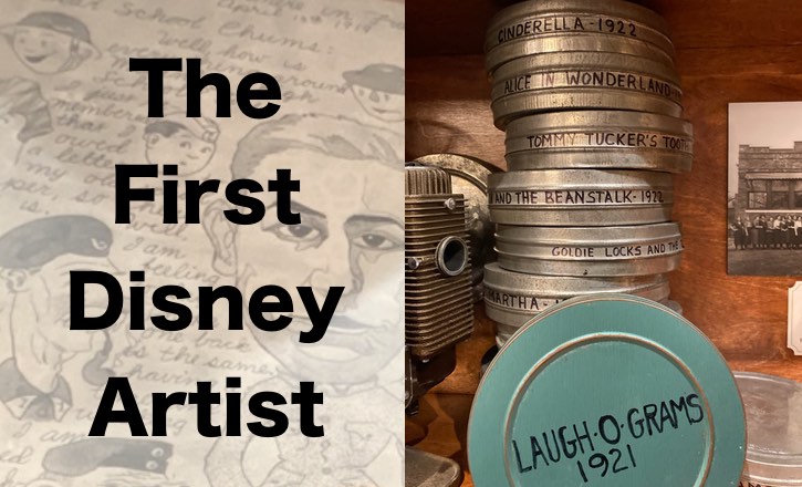 Part of the display is a series of film canisters featuring Laugh-O-Gram films: