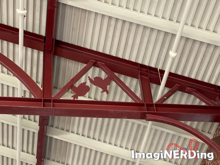 This is a building that I have walked through hundreds of times. It’s a wonderful respite from the glaring Florida sun and offers an escape from the rain. As we passed through the building, it was shocking to see the addition of some character images in the steel structures.