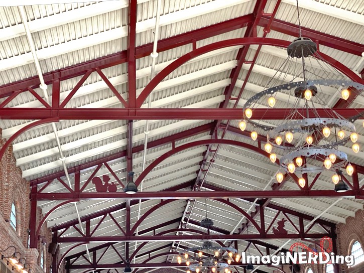I was hanging out with some friends at Disney Springs and we passed through the Market Building (1913). One of us looked up and noticed something we had never seen before in the steel beams supporting the roof.