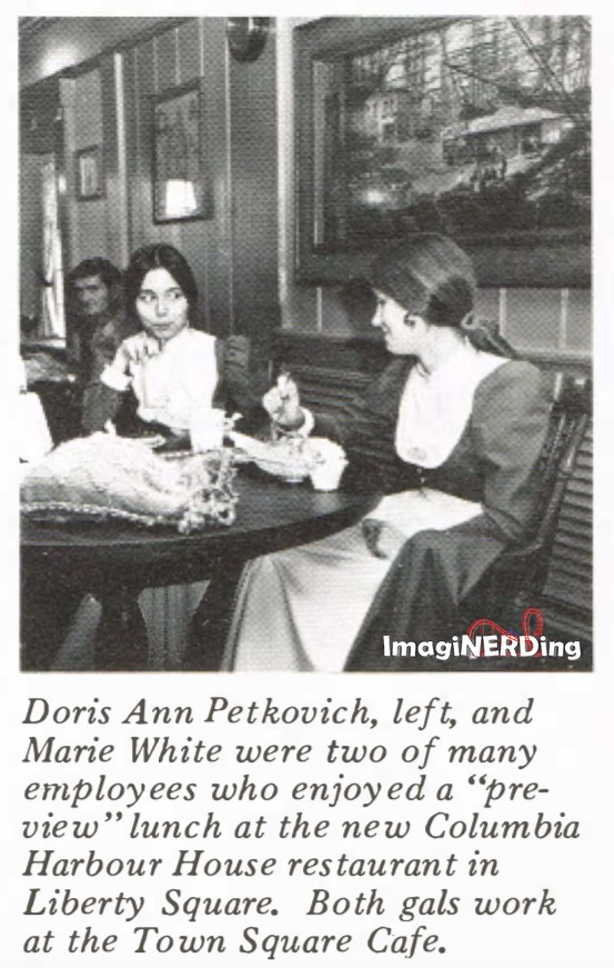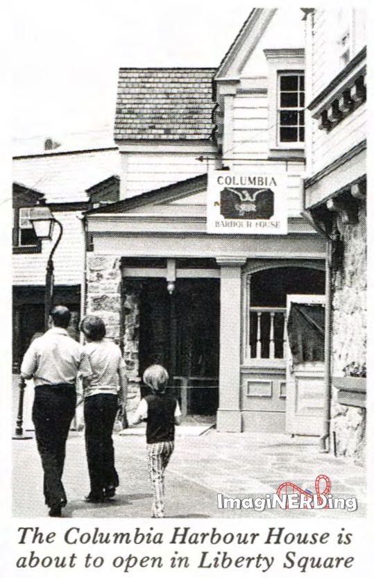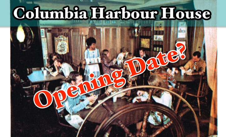 Currently, the D23 website lists the Columbia Harbour House as opening sometime in summer, 1972. The first edition (or so) of Dave Smith’s excellent Disney A to Z listed the opening at October 1, 1971. That was changed by the current 5th edition.