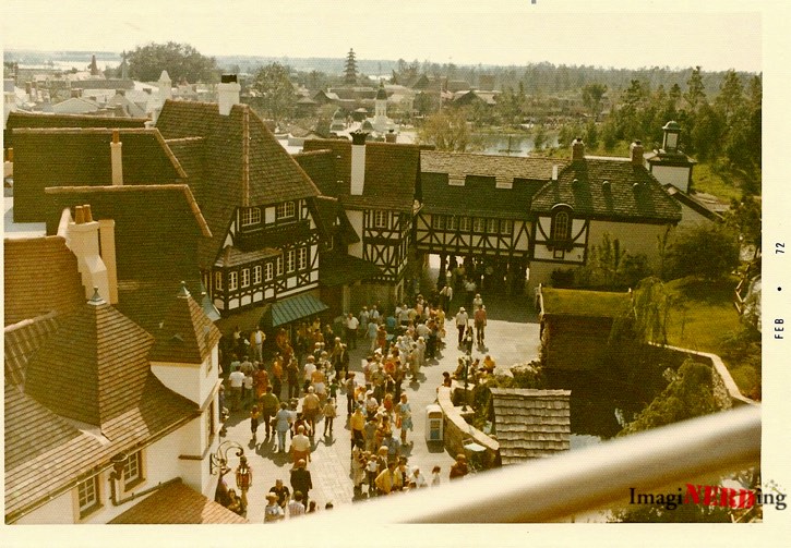 Trevor Clor (DRASABREED on Instagram) sent me a wonderful selection of photos from his grandparents 1971 and 1972 trips. One photo from the Skyway shows a packed Fantasyland with the Columbia Harbour House and a vista of Frontierland peeking over the building.
