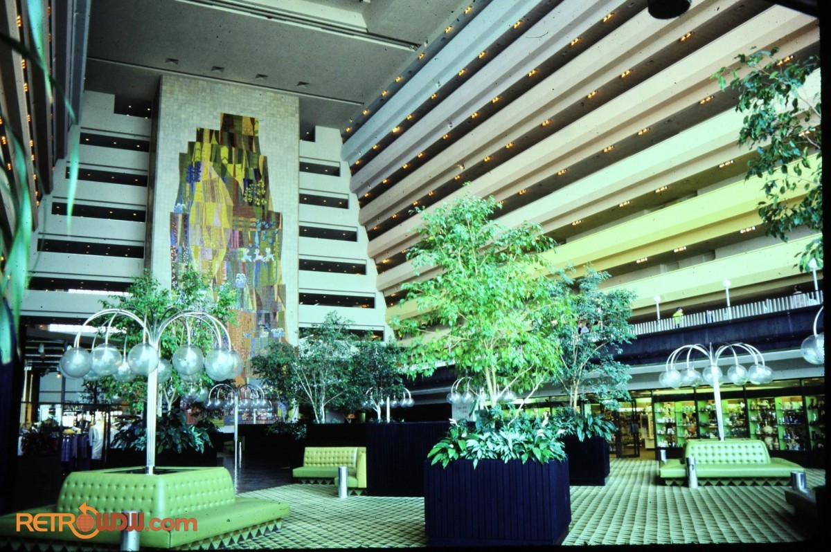 The piece also mentions that the show will take place at the concourse of the Contemporary Resort. This refers to the Grand Canyon Concourse, which s the large open floor area that currently houses Chef Mickey’s and the Fantasia Market. I found the following photos of the Concourse area on RetroWDW.