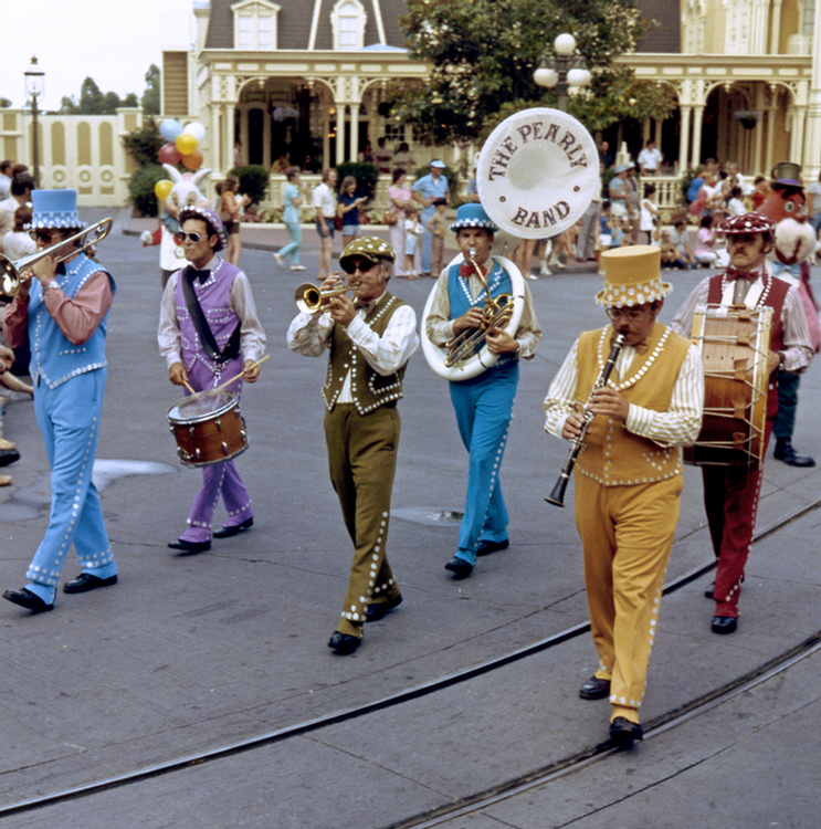 The Pearly Band was a live entertainment group that spent most of their time in Fantasyland before the opening of EPCOT Center (a new group at Epcot would be called the Pearly Kings and Queens). During the mid-1970s, they could be found on Main Street, the Plaza Pavilion and Tomorrowland.