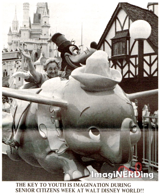 Yes, from Monday, May 9, 1973 through Sunday, May 13, 1972, the Magic Kingdom featured Senior Citizens Week! (Also notice that the Magic Kingdom operating hours were 9 a.m. to 8 p.m. until Memorial Day weekend. Think about: no extra magic hours or VIP events!