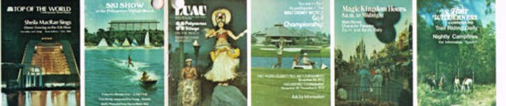 What an interesting poster promoting the hours of the Magic Kingdom. I’m confused by the hours listed (8a.m. to Midnight), since even during the first few years, the Magic Kingdom’s hours would vary. Holiday and summer hours were often 8a.m. or 9a.m. until Midnight, while weekday hours were typically from 9a.m. to 6p.m. Maybe this poster was changed daily? That makes sense to have an easily changeable poster that would promote the daily hours the Magic Kingdom.