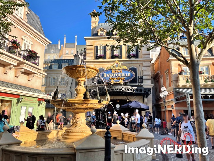 The debut of Remy’s Ratatouille Adventure at Epcot in October of 2021 offered guests a new experience as part of the their visit to Epcot. Similar to Frozen Ever After, the Ratatouille-based attraction is a much needed family-friendly addition to the park. During the annual passholder previews, I was able to spend some time investigating the courtyard to check out the architectural and hidden details.