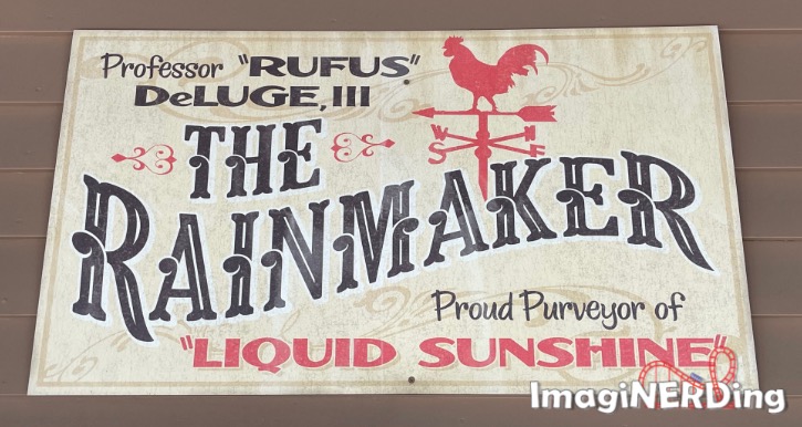 This a reference to the old stage show featuring a rainmaker that was in the Carolina RFD section of the park in the 1980s.